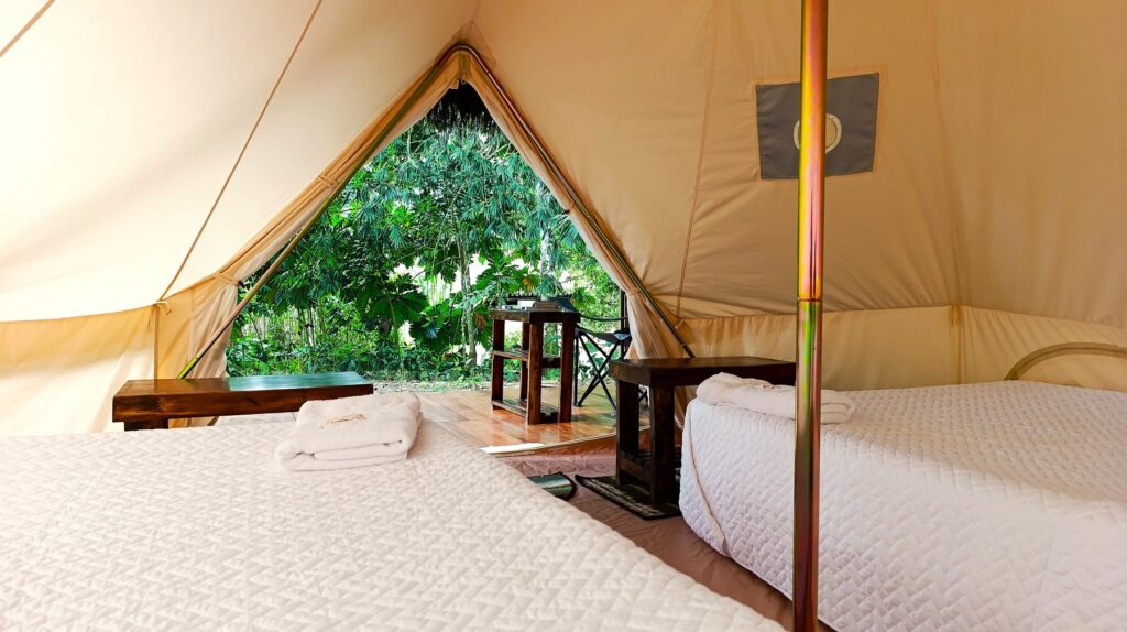 Here, you’ll be awakened by the symphony of the jungle and fall asleep to the gentle sounds of the river. Our thoughtfully designed glamping tents offer a tranquil retreat, blending modern comforts with the untamed spirit of the wilderness.