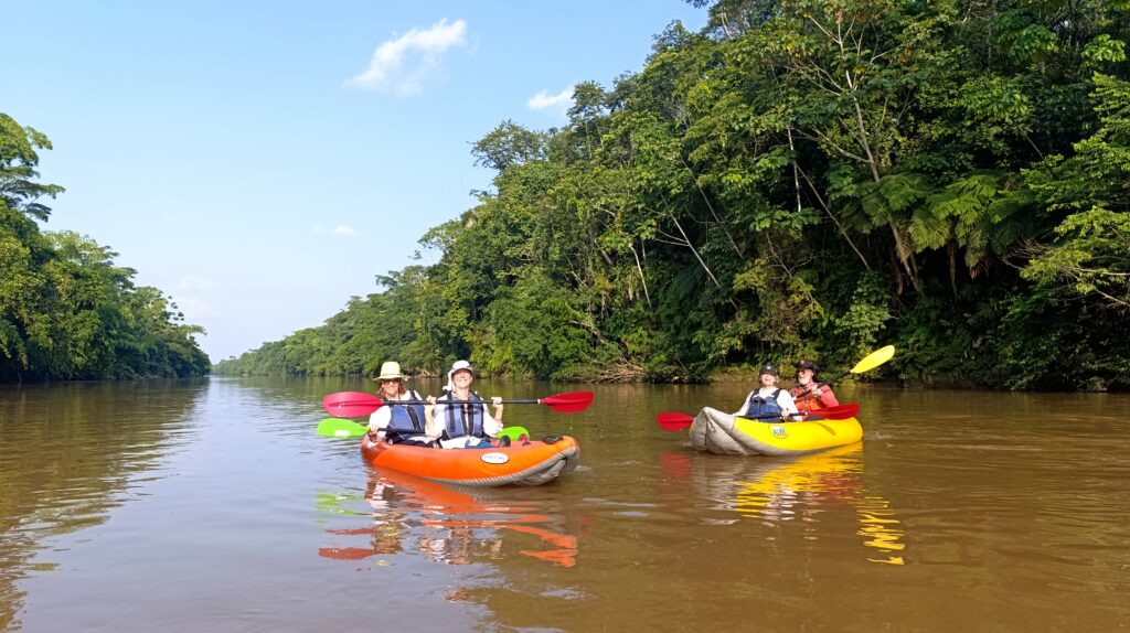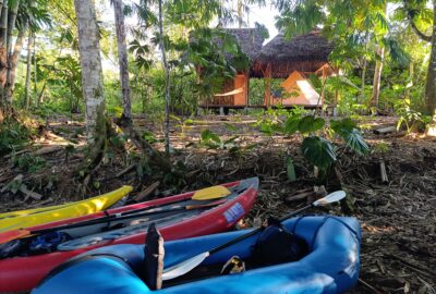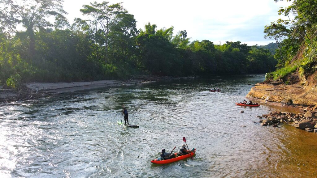 Your journey to this sanctuary begins in the nearest main city, Tena, just a 30-minute drive to the river access point. From there, the adventure continues with a beautiful trip upriver at the Arajuno river entrance—an exciting 45-minute canoe ride or a more immersive two-hour kayaking paddle from the Punin river entrance—delivering you directly to the tranquility of our glamping oasis.